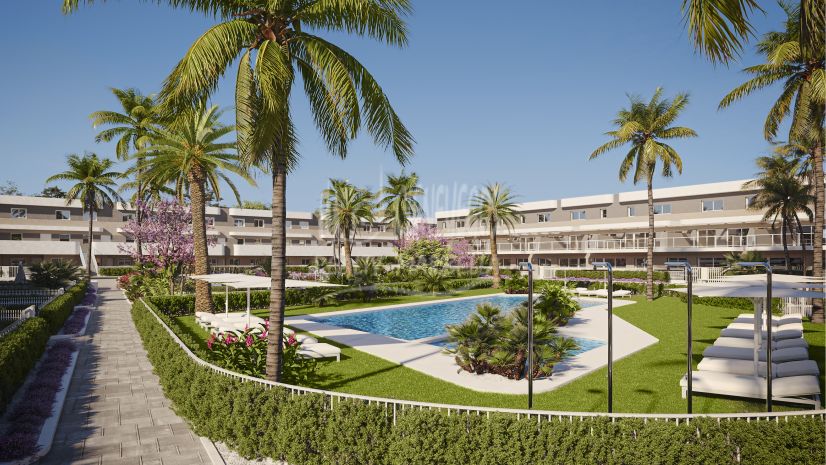 Los nuevos apartamentos y dúplex en venta son de 2 y 3 dormitorios y 2 baños, con amplias terrazas y jardines comunitarios, formando un residencial privado, reducido y tranquilo. Todas las viviendas se entregan con cocinas totalmente amuebladas y equipadas con vitrocerámica, campana extractora y horno. También cuentan con aire acondicionado con bomba de calor, agua caliente por aerotermia, pintura lisa blanca en paredes y techo, puertas y ventanas en PVC con doble acristalamiento y armarios empotrados en los dormitorios. Las viviendas en planta baja disponen de jardín, mientras que los dúplex cuentan con grandes terrazas.