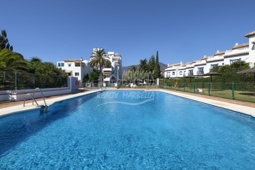 Fully renovated 3 bedroom duplex penthouse front line beach and located on the 9th floor with spectacular unbeaten and panoramic views to the Mediterranean and the coast. South facing. Direct access to the beach and walking distance to the port and town center of Estepona. Main floor: Spacious living/lounge area with open plan fully fitted kitchen with Bosch appliances. Direct access to a big covered and open terrace with amazing views. Guest toilet. Upper floor: Master bedroom en suite with dressing area, two guest bedroom sharing a bathroom, laundry and storage. Community pool and mature gardens, tennis court, social area with BBQ. Direct access to the beach and the Estepona promenade.Parking inside the gated community.A garage space is available at 15.000€.