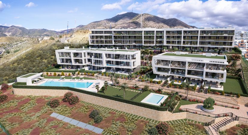 Spectacular new development of 60 luxury apartments in the most sought-after area of El Higuerón, in a gated exclusive community with gym, heated pool, jacuzzis and coworking space, 500m to the beach promenade and all services, 300m to the Carvajal train station with direct access to the Airport, and downtown Málaga, and 3Km to Fuengirola city center.