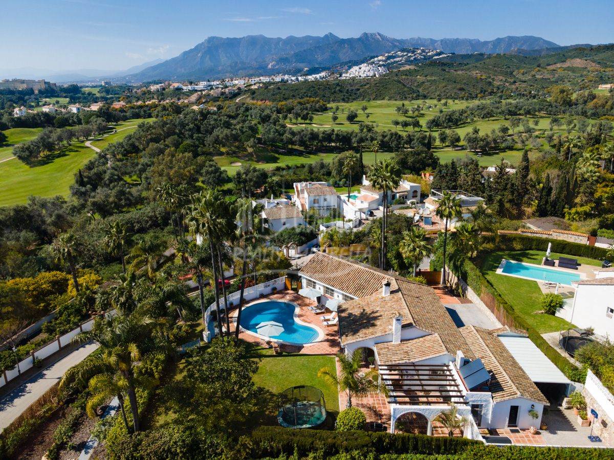 A wonderful five bedroom Andalusian style villa located in the prestigious and gated East Marbella community of El Rosario. Distributed over one level which is rare to find and situated on a corner plot. This expansive plot of over 1700 square metres offers all day sunshine throughout the year with its South west orientation.