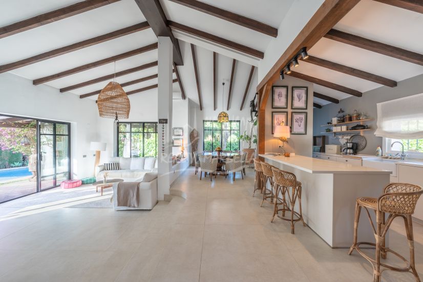 Welcome to this beautifully renovated 4-bedroom villa in the heart of Atalaya, a perfect blend of charm, character, and modern comfort. This stunning family home boasts an artistic ambiance, with elegant wooden beams, soaring high ceilings, and an inviting atmosphere that makes it truly special.