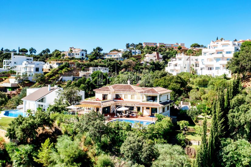 Ideally located in La Mairena (Monte Elviria), with a plot of 2043 m2 with total privacy! The main floor (in the living room) is enhanced with very high ceilings of two heights and extends about 561 m2 built inside + terraces!