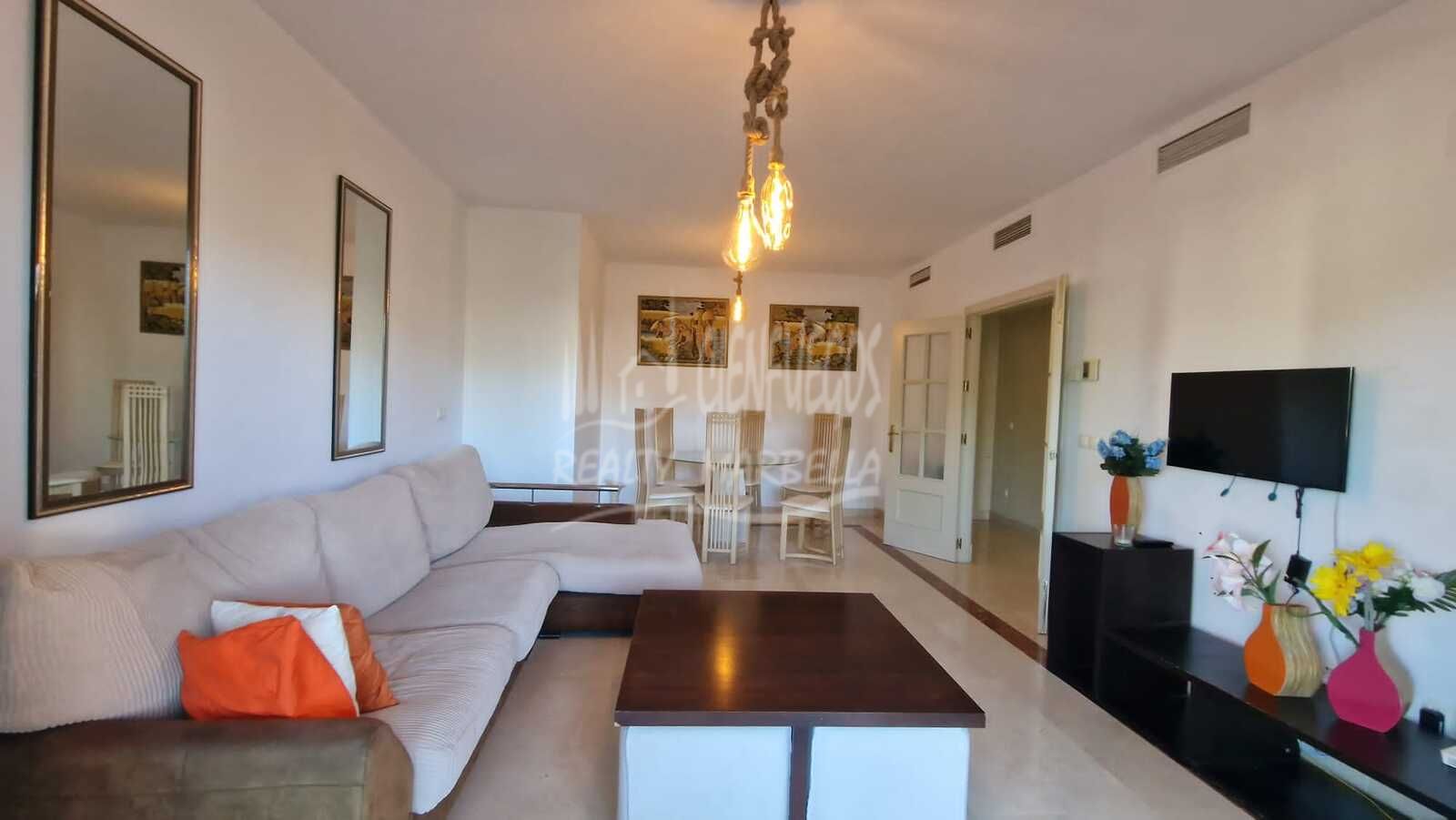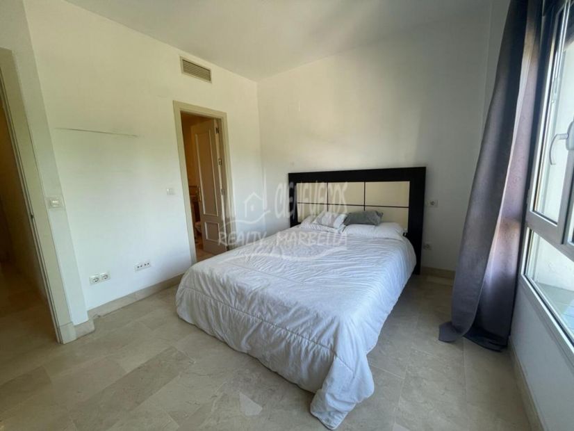 Welcome to this well-situated 3-bedroom apartment in a prime location next to the popular Real Club Padel. Enjoy the comfort of a bright and spacious living room, along with three double bedrooms, one featuring an en-suite bathroom. The main terrace overlooks the street and lush green areas.