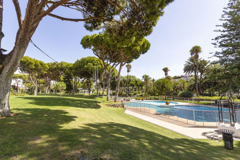 Large beachfront complex next to Puerto Banús with enormous gardens, 3 large swimming pools, beachfront access, a café and restaurant exclusively for residents, and 24-hour concierge service.