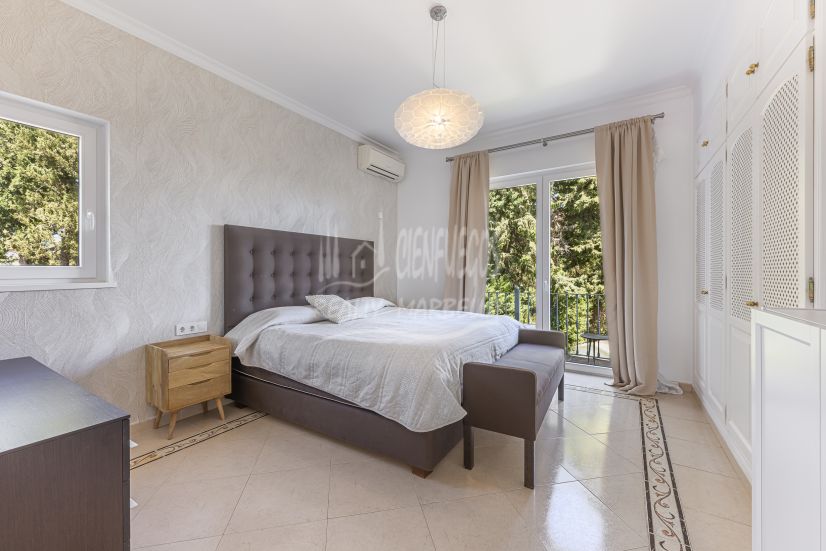 Highlights • Five ensuite bedrooms, including two master suites • Light-filled open-plan living area • Expansive terraces on both sides of the villa • Swimming pool & private gardens • Air conditioning & central heating • Fireplace • Automatic irrigation system • Conveniently close to schools, golf courses, and polo fields