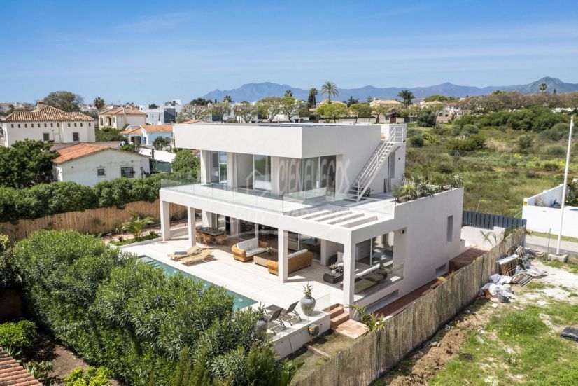 We present a recently built high-quality villa located on the beach of San Pedro de Alcántara, designed to meet the impeccable standards of German construction. Enjoy the convenience of being within walking distance of the beach and the charming San Pedro Promenade.
