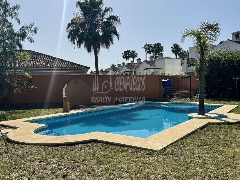 Se ofrece en venta una elegante vivienda unifamiliar aislada, ubicada en una tranquila urbanización privada que dispone de servicio de jardinería y piscina comunitaria. La propiedad, de estilo Mediterráneo, se asienta sobre una parcela de 646 m² y cuenta con una superficie construida de 157 m², distribuida en dos niveles, con óptima orientación sur que garantiza una excelente luminosidad natural durante todo el día.