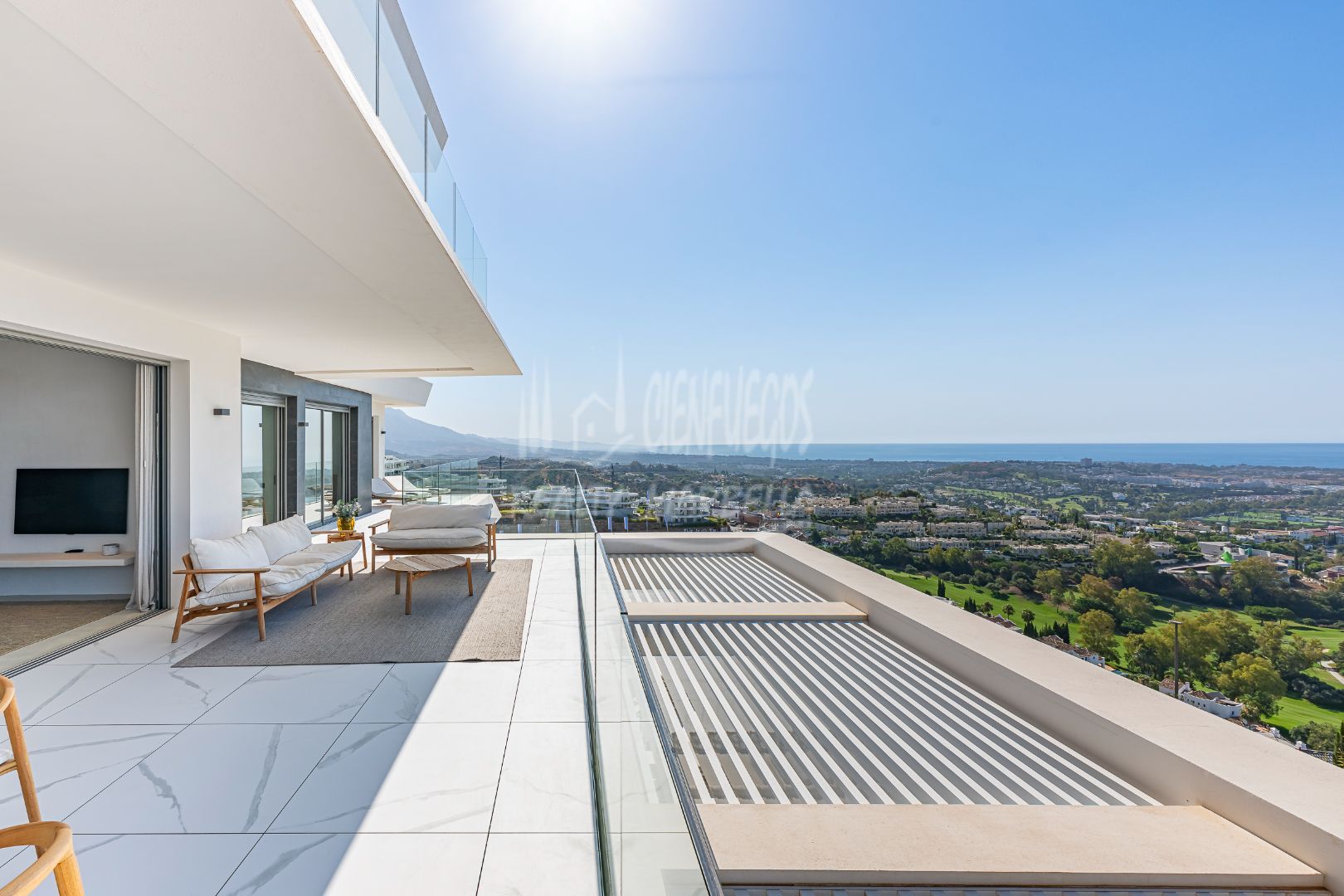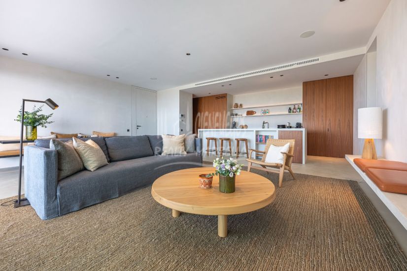 Consta de tres dormitorios siendo el principal en suite, su salón es amplio y en el encontramos una cocina de diseño y concepto abierto que nos comunica visualmente con el magnífico entorno exterior a través de una amplia terraza de 61 metros cuadrados.