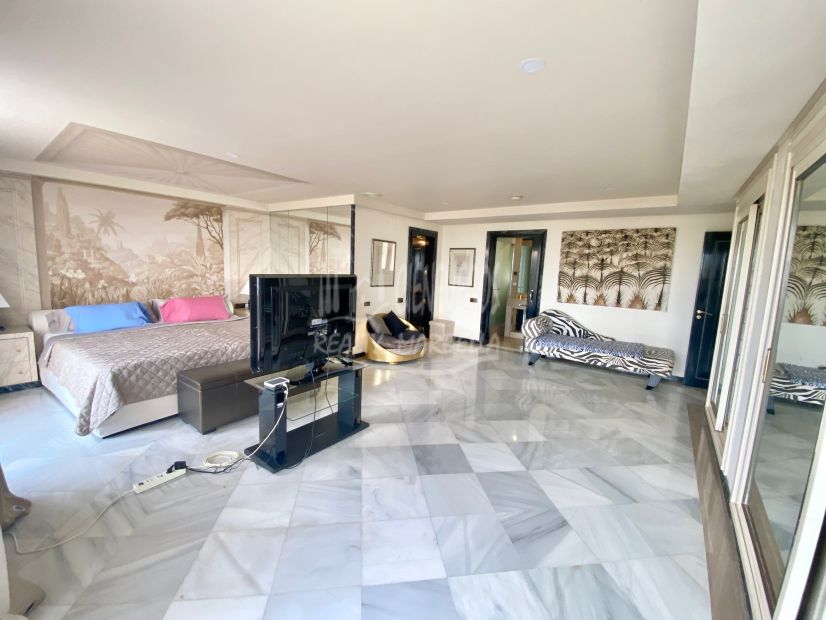 Apartamento exclusivo y único, situado en primera línea de playa, en el prestigioso complejo Mare Nostrum, ubicado en una de las mejores zonas del centro de Marbella. Tiene increíbles vistas de 360 grados al mar y la montaña, ya que tiene una gran terraza de esquina a la que se accede a todos los dormitorios de la propiedad. Está situado cerca de todo tipo de servicios, bares, tiendas, justo en el famoso paseo marítimo de Marbella.