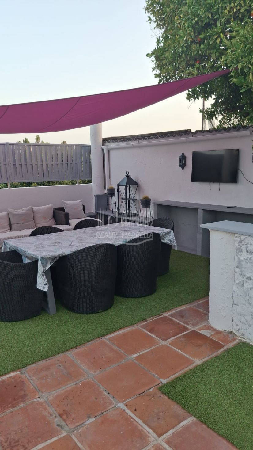 Distribuida en 267 m² en una sola planta para una accesibilidad impecable, esta vivienda orientada al sur irradia calidez con tres amplios dormitorios equipados con armarios empotrados, un baño moderno, un luminoso salón y una cocina totalmente equipada. El elemento destacado es la extensa terraza completa con kitchenette, zona de barbacoa y una piscina privada – ideal para entretener al aire libre bajo el sol. La generosa parcela de 1.266 m² es un paraíso para jardineros, con un productivo huerto de frutales que incluye higuera, limonero, naranjos, mandarino, manzanos, chirimoyo, olivos y un maravilloso gran aguacate, más un terrenito dedicado para siembra de verduras o hierbas. Otros extras incluyen aire acondicionado en toda la casa, trastero y garaje privado, todo en una propiedad lista para abrazar su toque personal.