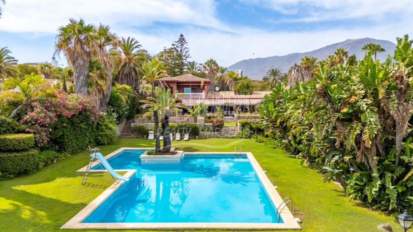 Ubicada en una extraordinaria parcela en primera línea de playa de más de 7.600 m², esta magnífica propiedad ofrece una oportunidad única de adquirir una de las fincas más amplias y privadas de la Nueva Milla de Oro. Con vistas panorámicas al mar, jardines tropicales maduros y una ubicación inmejorable a solo minutos de Estepona y sus mejores servicios, esta villa es un verdadero refugio costero.