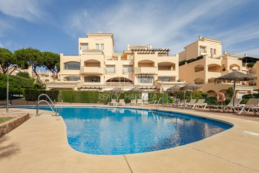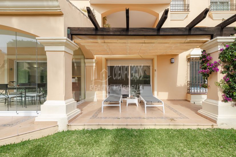 Magnífico apartamento en planta baja de tres dormitorios en la urbanización cerrada Hacienda Elviria