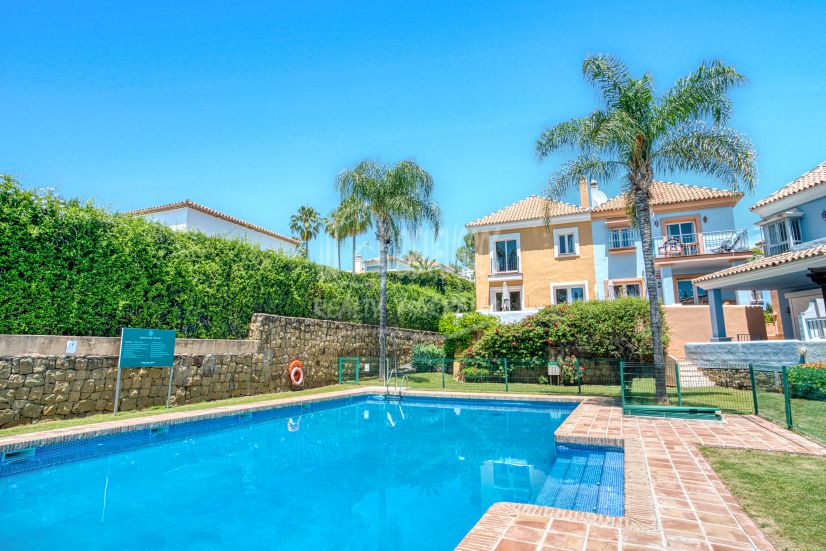 Elegante casa de dos dormitorios, orientada al suroeste, situada en una exclusiva comunidad cerrada de Nueva Andalucía, Marbella