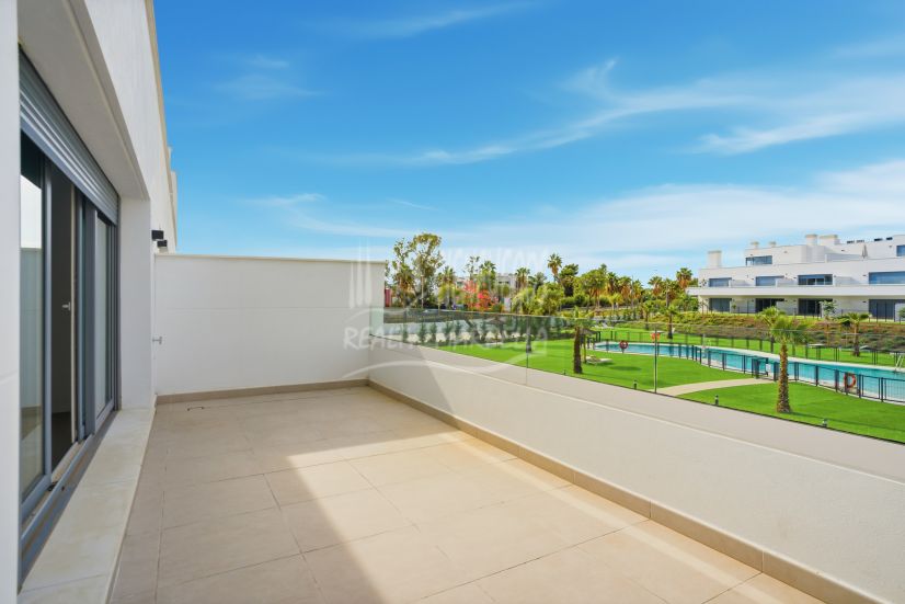 Elegante y orientado al suroeste apartamento de dos dormitorios situado en la codiciada comunidad cerrada Acqua Gardens en la Nueva Milla de Oro, Estepona