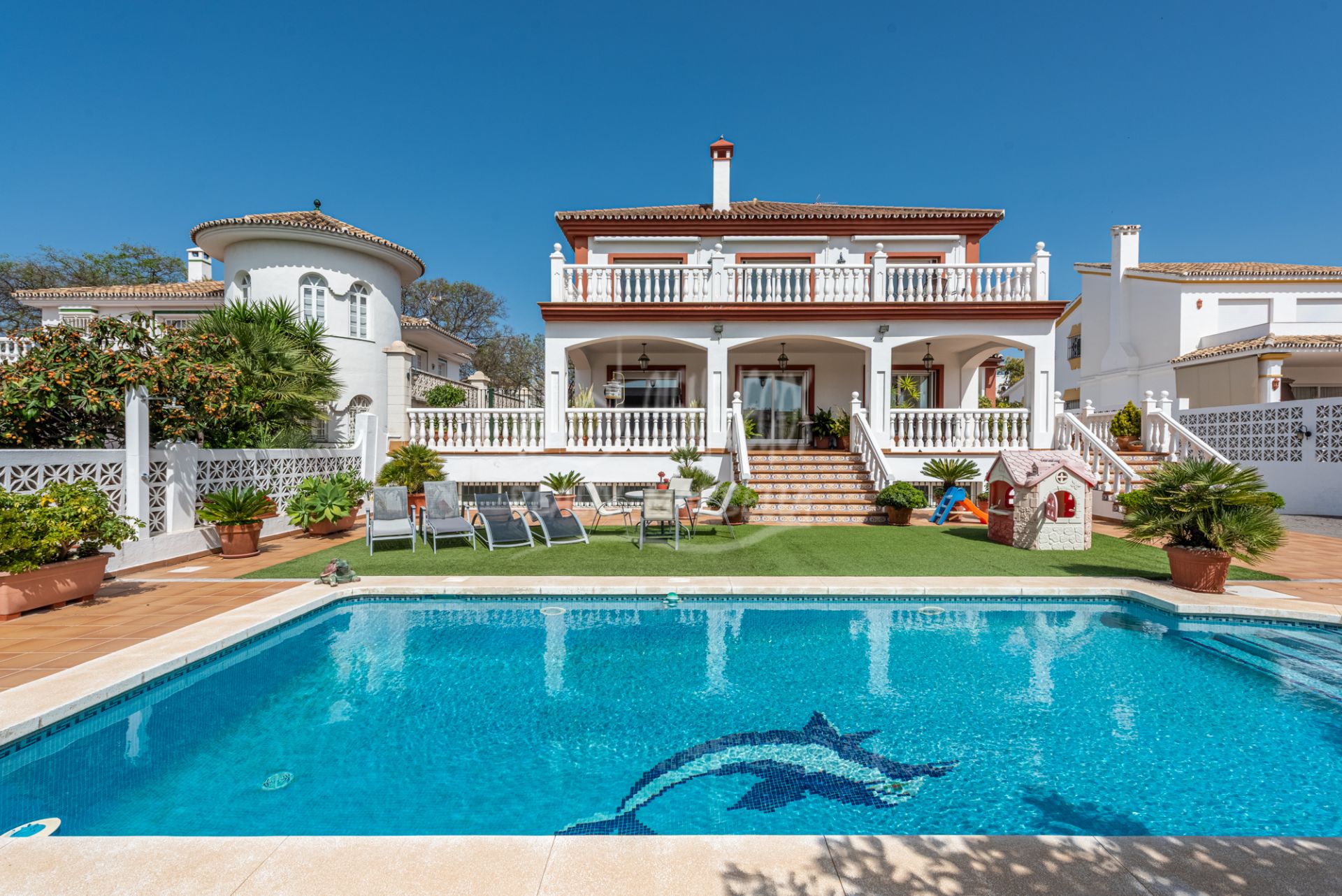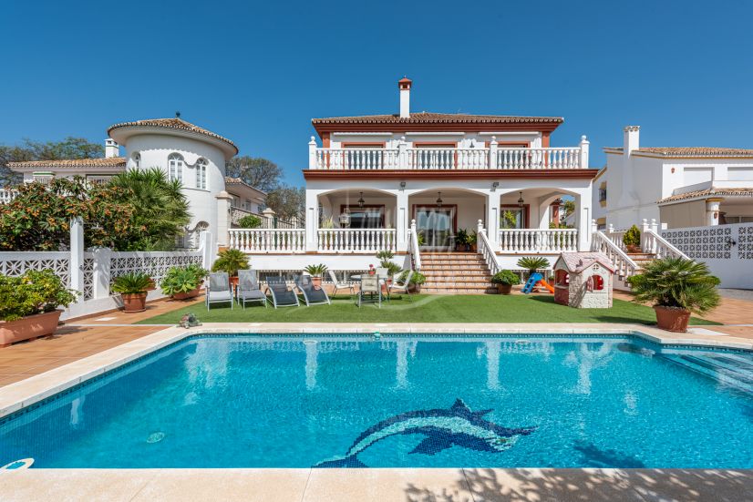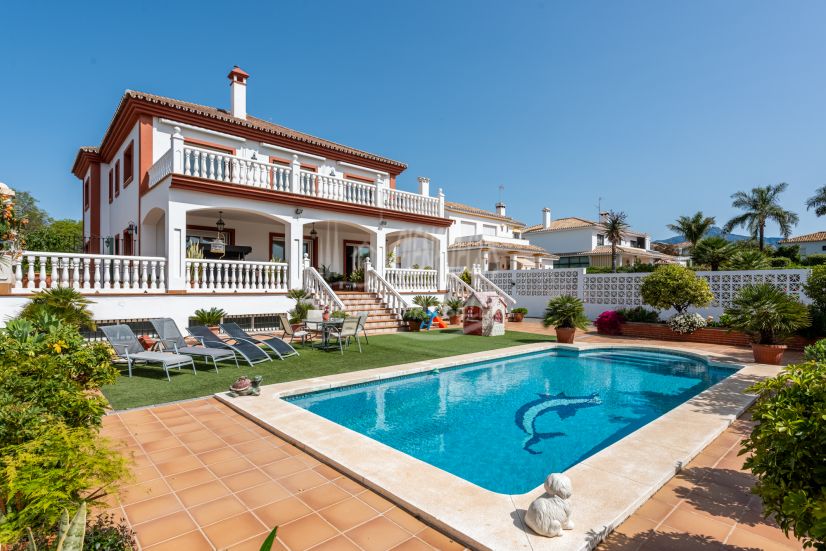 Esta excepcional villa de estilo andaluz está idealmente situada en el centro de San Pedro de Alcántara, a solo 10 minutos a pie de la playa y del paseo marítimo. Ofreciendo una combinación única de encanto tradicional y espacios amplios, la propiedad es perfecta para familias numerosas o para quienes buscan una vivienda con alojamiento para invitados.