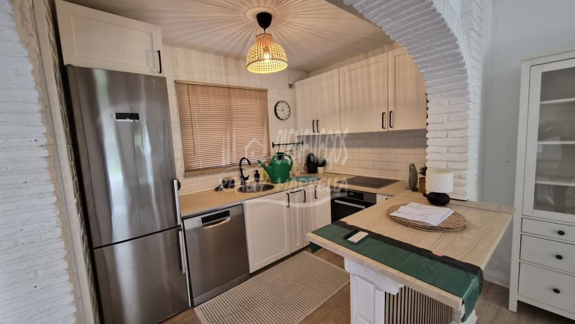 Esta casa adosada de dos plantas, con ático y jacuzzi, ha sido completamente reformada, incluyendo suelos, paredes, cocina y baños. La casa cuenta con un luminoso salón (interior y exterior) y una terraza privada.