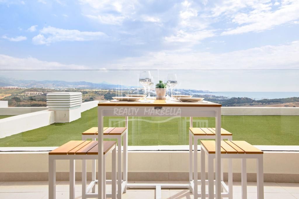 Gracias a su posición elevada, las vistas desde la terraza son espectaculares desde la Sierra de Marbella hasta Gibraltar y la costa de Marruecos. Y se encuentra dentro del magnífico campo de golf Finca Cortesín con sus campos de golf de 5 estrellas, hotel y restaurantes.