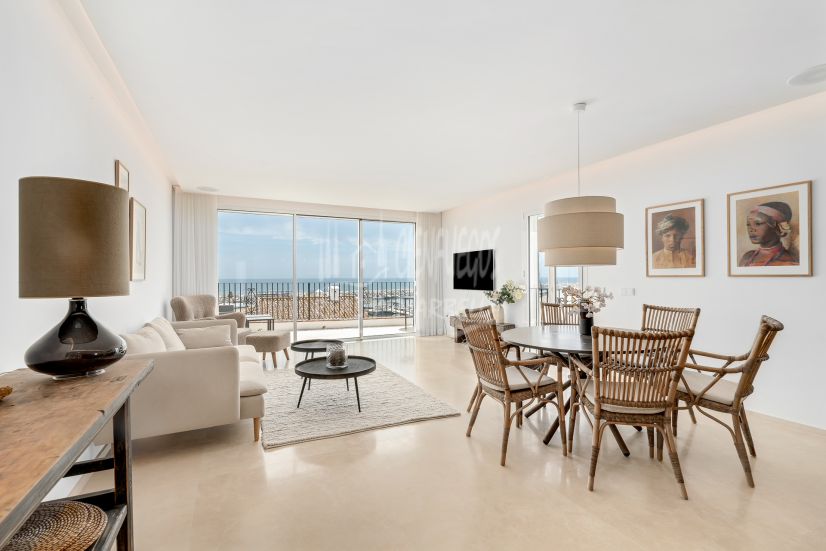 Un lujoso apartamento de diseño contemporáneo ubicado en el famoso puerto deportivo de Puerto Banús. Este luminoso apartamento de 2 dormitorios y 2 baños con orientación sur y su propia plaza de garaje ofrece vistas abiertas al puerto y al mar Mediterráneo. Habiendo sido completamente renovada recientemente con las más altas calidades, esta elegante propiedad ahora cuenta con una cocina contemporánea y totalmente equipada de planta abierta y una sala de estar con acceso directo a la terraza, baños elegantes y un moderno sistema de control de temperatura con aire acondicionado y calefacción por suelo radiante en todo el toda la propiedad. La amplia sala de estar, los dormitorios y la ubicación céntrica con todo lo que Puerto Banús tiene para ofrecer hacen de esta una propiedad perfecta para un usuario final o para invertir en alquiler.