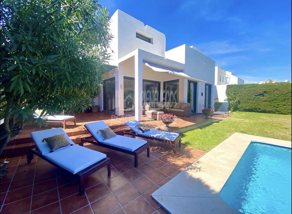 La villa se encuentra en una parcela privada con un hermoso jardín y una piscina ideal para disfrutar del clima mediterráneo durante todo el año Varias terrazas y zonas chill-out ofrecen espacios perfectos para relajarse o recibir invitados proporcionando un entorno de exclusividad y tranquilidad Dispone además de un garaje privado con capacidad para varios vehículos