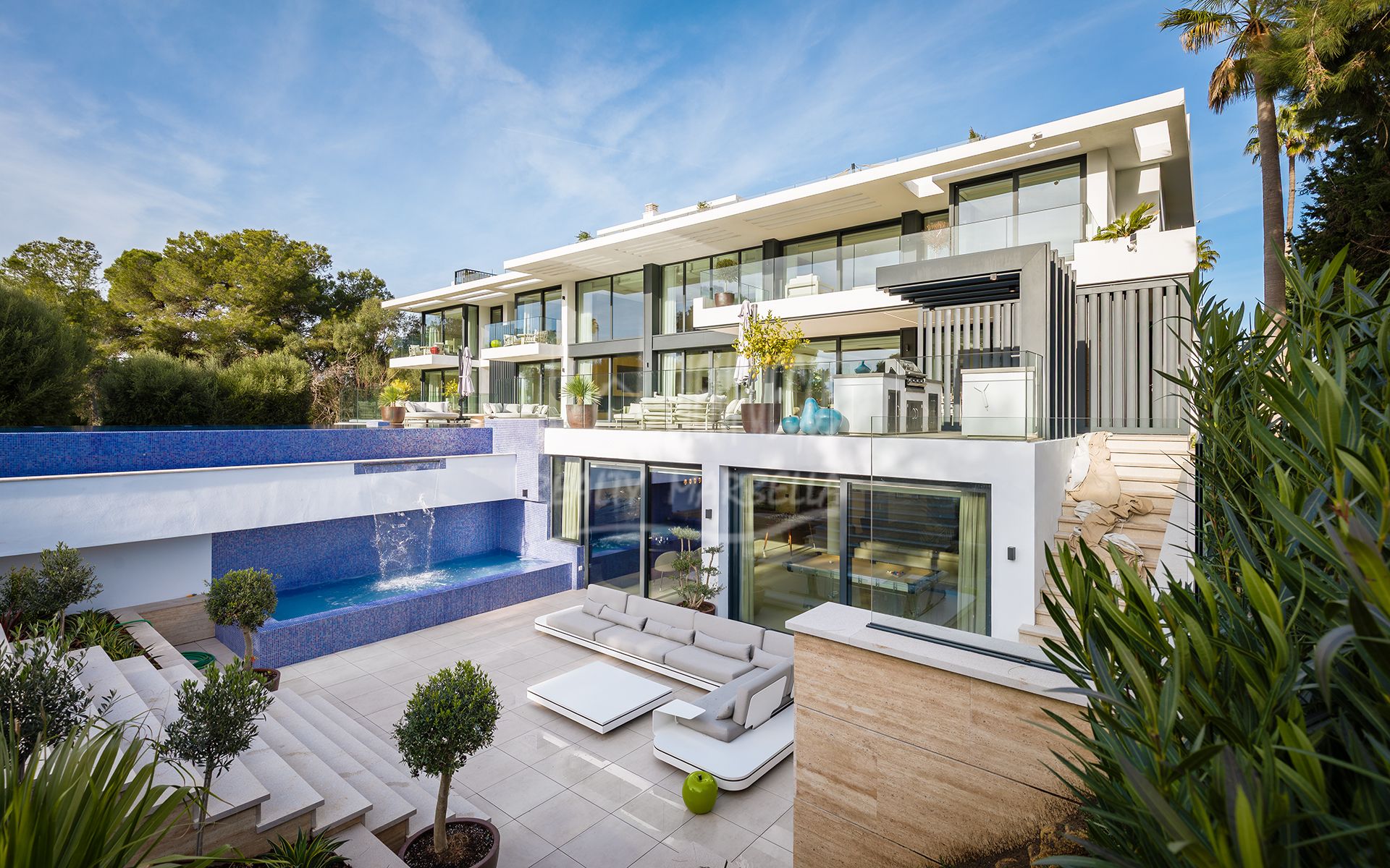 La vivienda se encuentra en una magnífica parcela ajardinada de 3.828 m², ofreciendo una integración perfecta de arquitectura contemporánea, interiores de concepto abierto y acabados de alta gama, diseñados para elevar el estilo de vida mediterráneo relajado y el entretenimiento sofisticado.